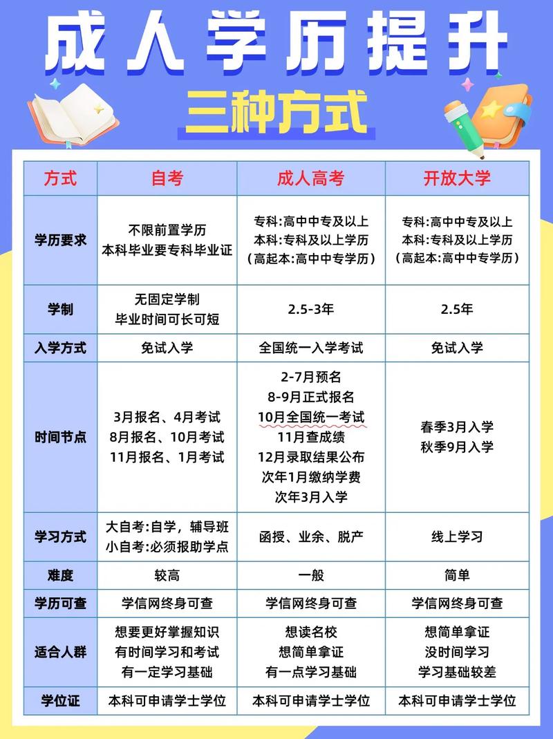 学历提升图片 怎么选最靠谱?成考自考国开区别一看就懂学历提升到底怎么选才靠谱就学历提升此话题而言,这些年我接触了好些想要继···